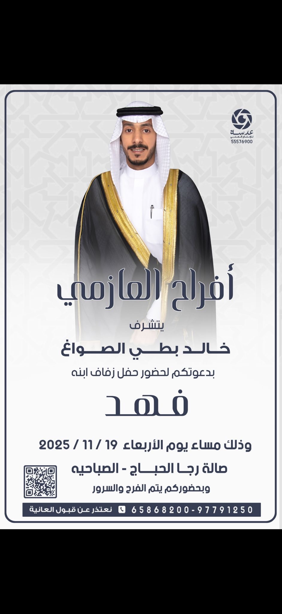 ( نحيطكم علماً حتى لا يتم التعارض مع ابناء العمومه والأصدقاء )